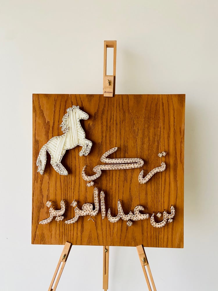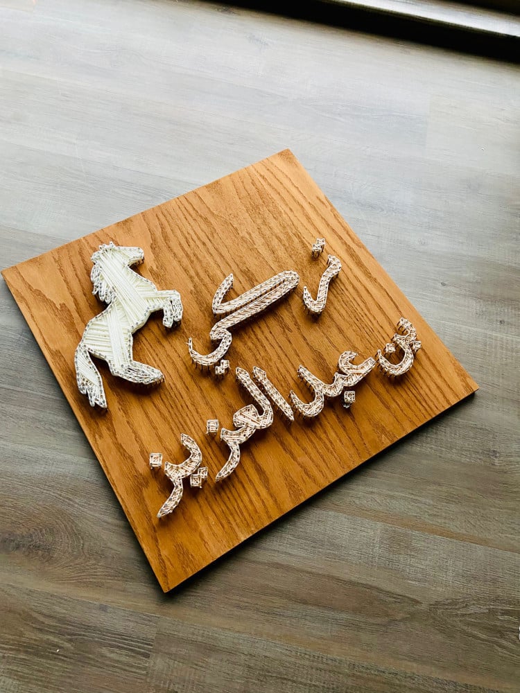 لوحة خشبية بفن الخيوط والمسامير لاستقبال مولود\ة